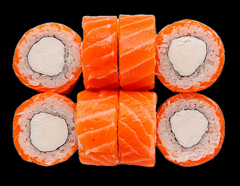 Ролл с нежным творожным сыром, обернут в филе лосося.