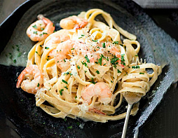 Паста с креветками и ветчиной