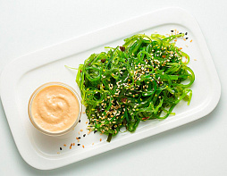 Чука, свежий огурец, болгарский перец, пекинская капуста, айсберг, соус ореховый, кунжут, лимон.