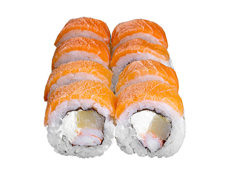 Тигровая креветка, филе лосося, ананас, соус «чили- манго», творожный сыр.