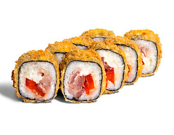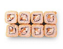 Тигровая креветка, спелый авокадо, нежный крем – краб, острый соус «Шрирачи», кляр , панировка.