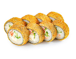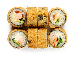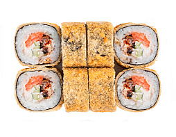 Лосось, угорь, творожный сыр, свежий огурчик, кляр, панировка, унаги соус, кунжут.