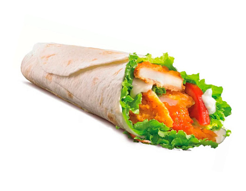 Филе куриное в панировке, помидоры, сыр, микс салата, свежий огурчик, соусы: чесночный и 1000 островов.